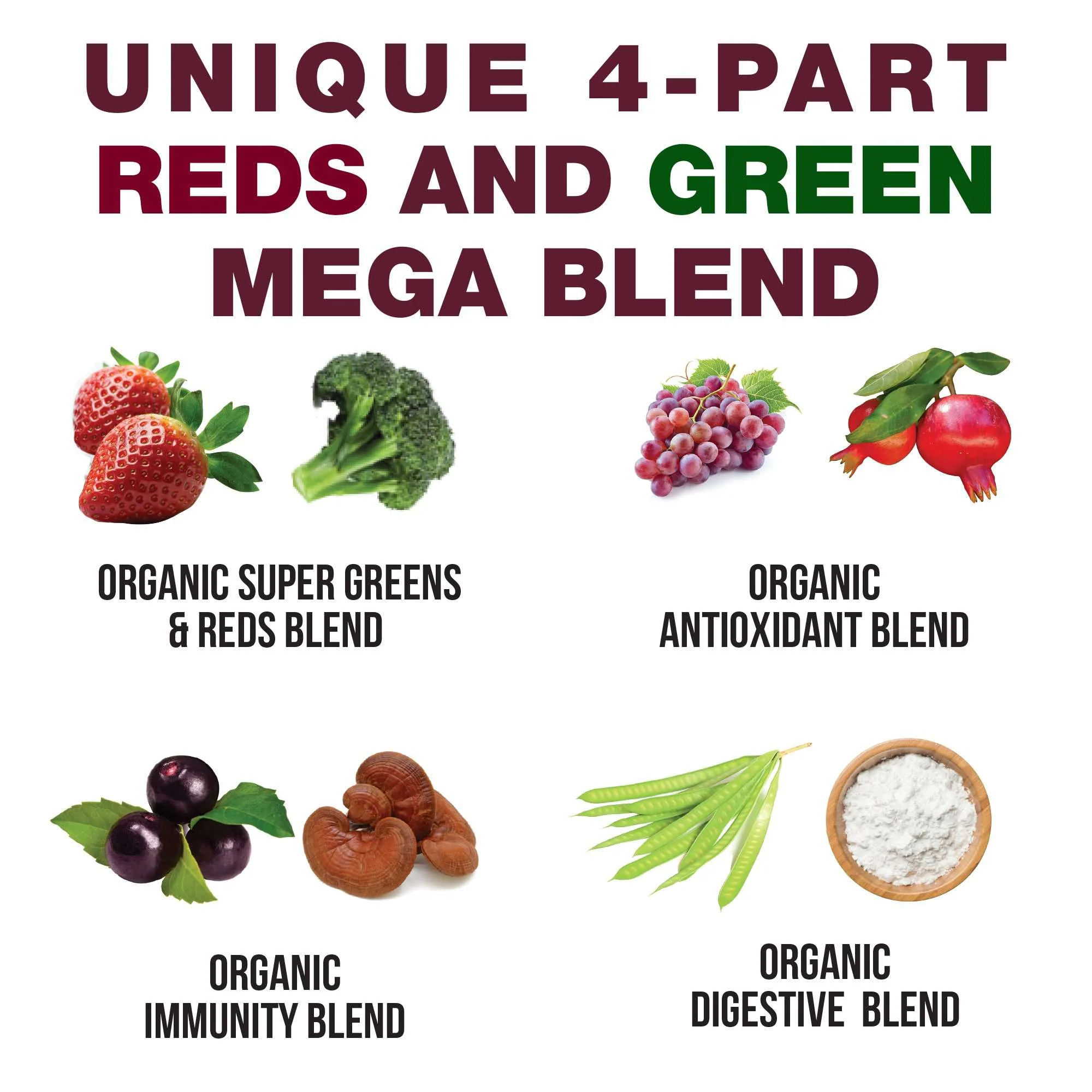 Kids Greens and Reds Superfood Powder - Best Tasting Organic Vegan Super Food Juice with 25+ Fruits and Vegetables - Gluten Free Real Food Vitamins - Green and Red Superfoods Supplement for Children