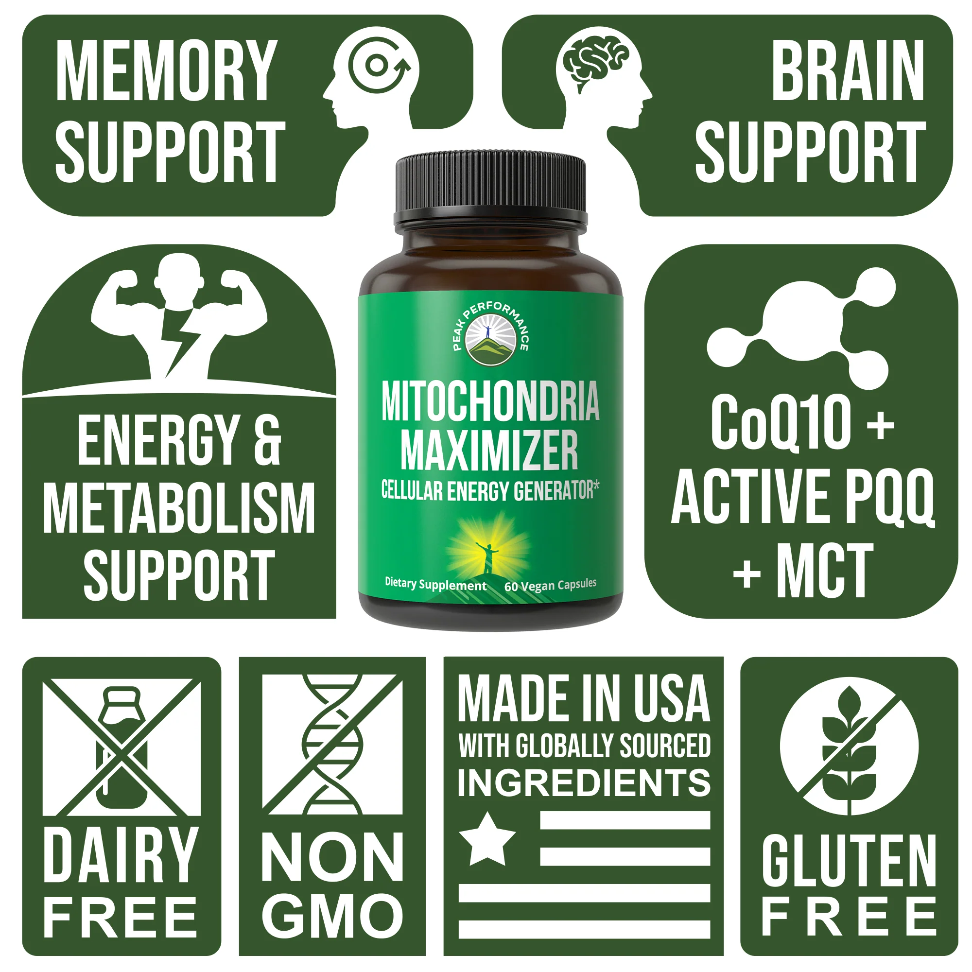 Peak Performance Mitochondria Maximizer with CoQ10 and Active PQQ. Best Mitochondrial Support Supplement with MCT Oil. Natural Cellular Generator for Clean, Energy Support. 60 Vegetarian Capsules